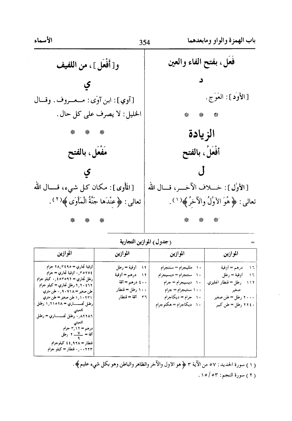 - (جدول) الموازين التجارية الموازين/ الموازين/ الموازين/ الموازين 16 درهم أوقية/ 10 ملليجرام سنتجرام/ 12 أوقية رطل/ أوقية تجاري 3495/ 28 جرام 16 أوقية رطل/ 10 سنتجرام ديسيجرام/ 12 درهم أوقية/ 35274/ 0 أوقية تجاري جرام 112 رطل قنطار انجليزي/ 10 ديسيجرام جرام/ 400 درهم أقة/ رطل تجاري 453592/ 0 كيلو جرام 20462/ 2 رطل تجاري كيلو جرام صغير/ 100 سنتيجرام جرام/ 100 رطل قنطار/ طن صغير 90718/ 0 طن متري 2000 رطل طن صغير/ 10 جرام ديكاجرام/ 36 أقة قنطار/ 10231/ 1 طن صغير طن متري 2240 رطل طن كبير/ 10 ديكاجرام هكتوجرام// رطل تجاري 21528/ 1 رطل/// تثميني/// 82286/ 0 رطل تجاري رطل/// تثميني/// درهم 12/ 3 جرام/// آفة 7/ 9 2 رطل/// قنطار 928/ 44 كيلو جرام/// 00223/ 0 قنطار كيلو جرام