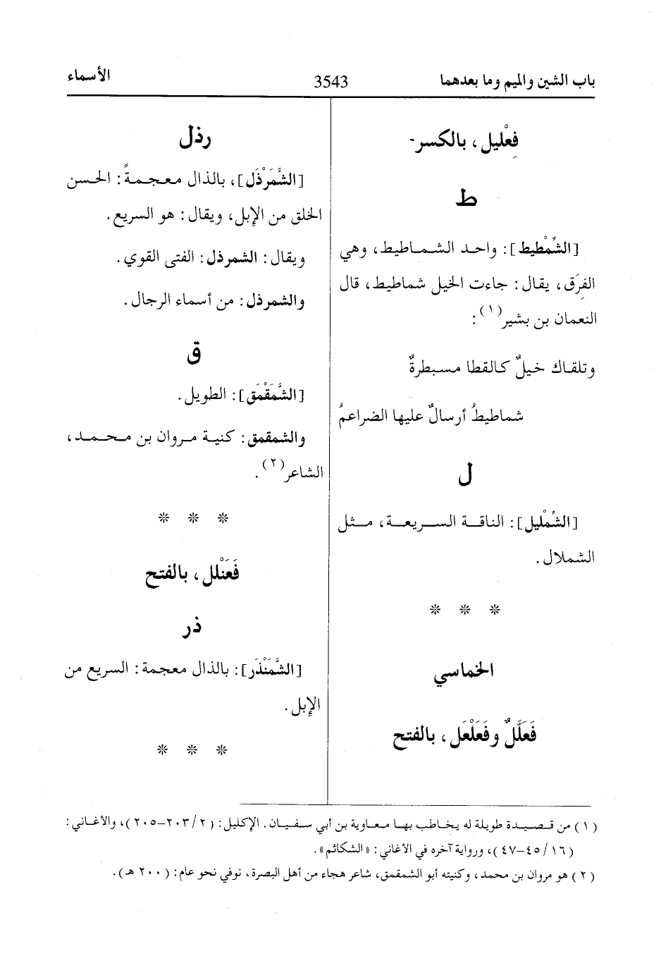 (2) هو مروان بن محمد، وكنيته أبو الشمقمق، شاعر هجاء من أهل البصرة، توفي نحو عام: (200 هـ).
