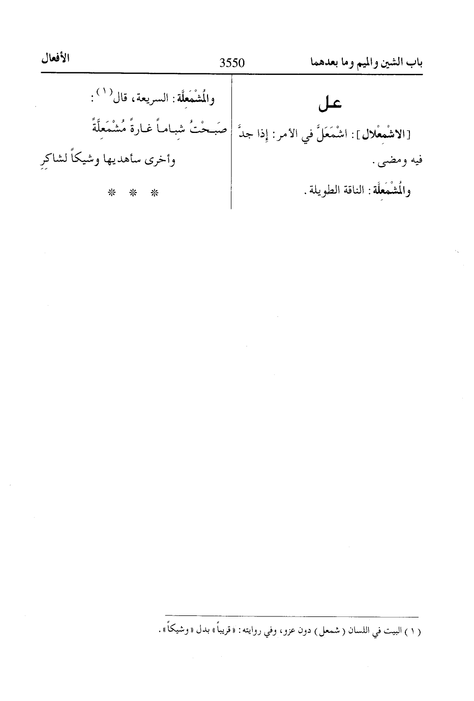 (1) البيت في اللسان (شمعل) دون عزو، وفي روايته: