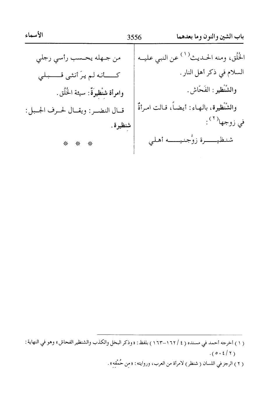 (2) الرجز في اللسان (شنظر) لامرأة من العرب، وروايته: