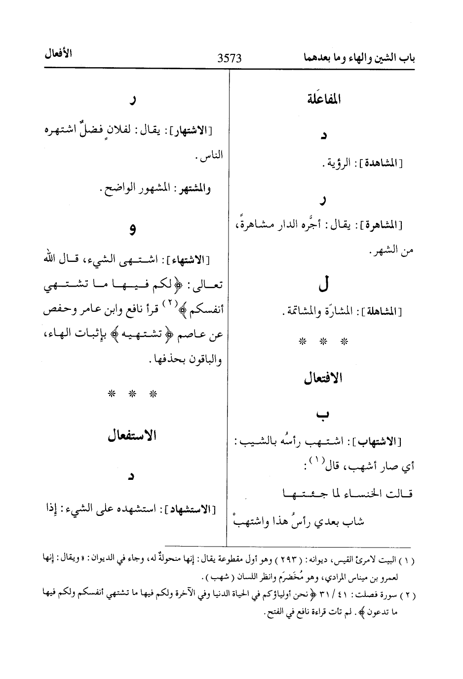 و [الاشتهاء]: اشتهى الشيء، قال اللّاه تعالى: لَكُمْ فِيهاا ماا تَشْتَهِي أَنْفُسُكُمْ «2» قرأ نافع وابن عامر وحفص عن عاصم تشتهيه بإِثبات الهاء، والباقون بحذفها.