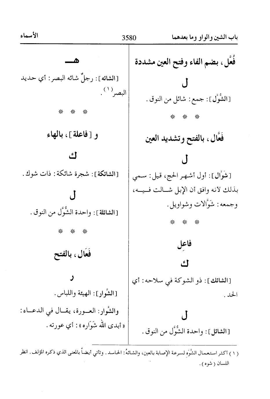 (1) أكثر استعمال الشَّوَهِ لسرعة الإِصابة بالعين، والشائهُ: الحاسد. وتأتي أيضاً بالمعنى الذي ذكره المؤلف. انظر اللسان (شوه).