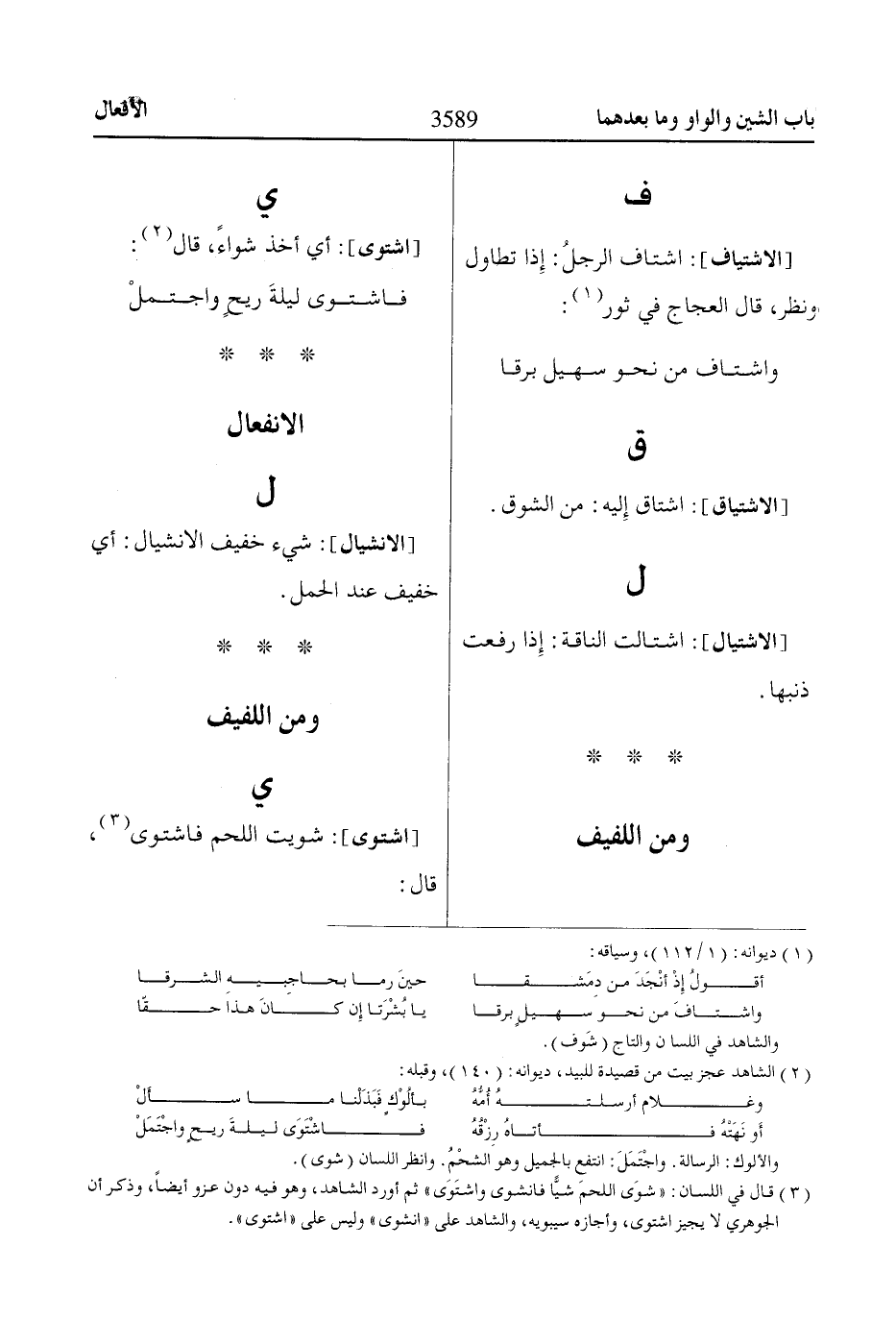 [الاشتياف]: اشتاف الرجلُ: إِذا تطاول ونظر، قال العجاج في ثور «1»: