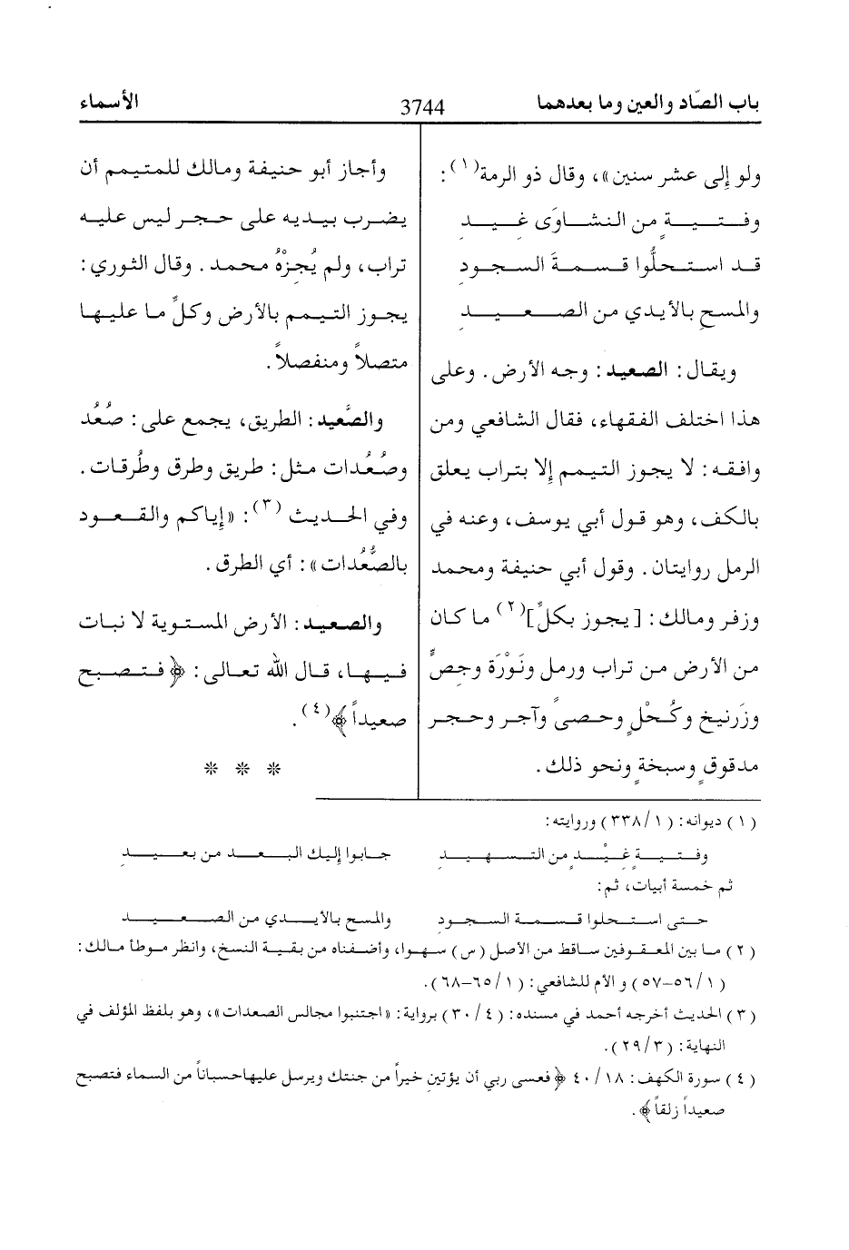 والصعيد: الأرض المستوية لا نبات فيها، قال اللّاه تعالى: فَتُصْبِحَ صَعِيداً «4».