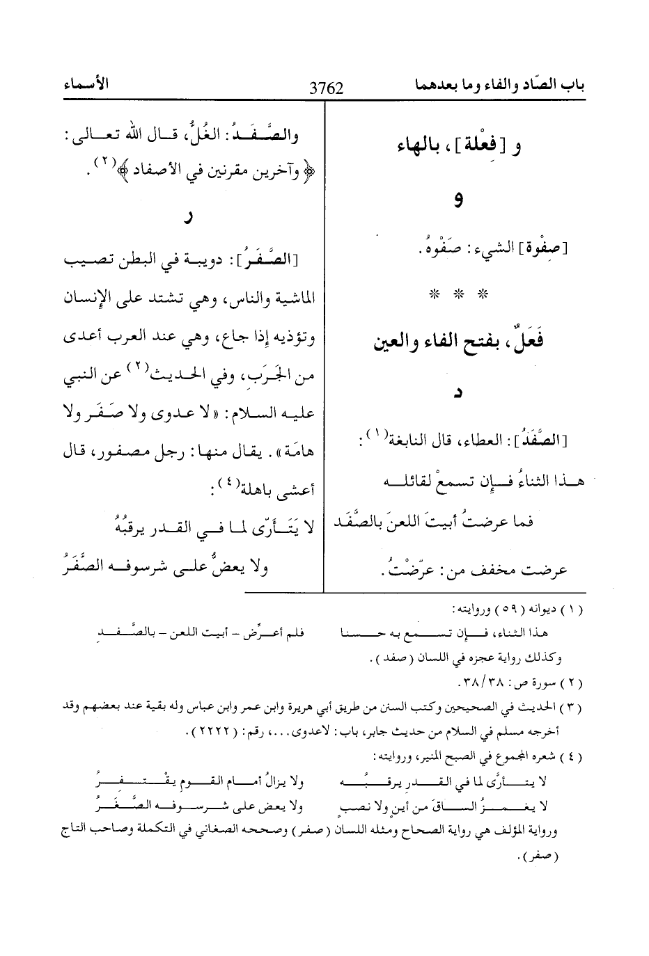 ورواية المؤلف هي رواية الصحاح ومثله اللسان (صفر) وصححه الصغاني في التكملة وصاحب التاج (صفر).
