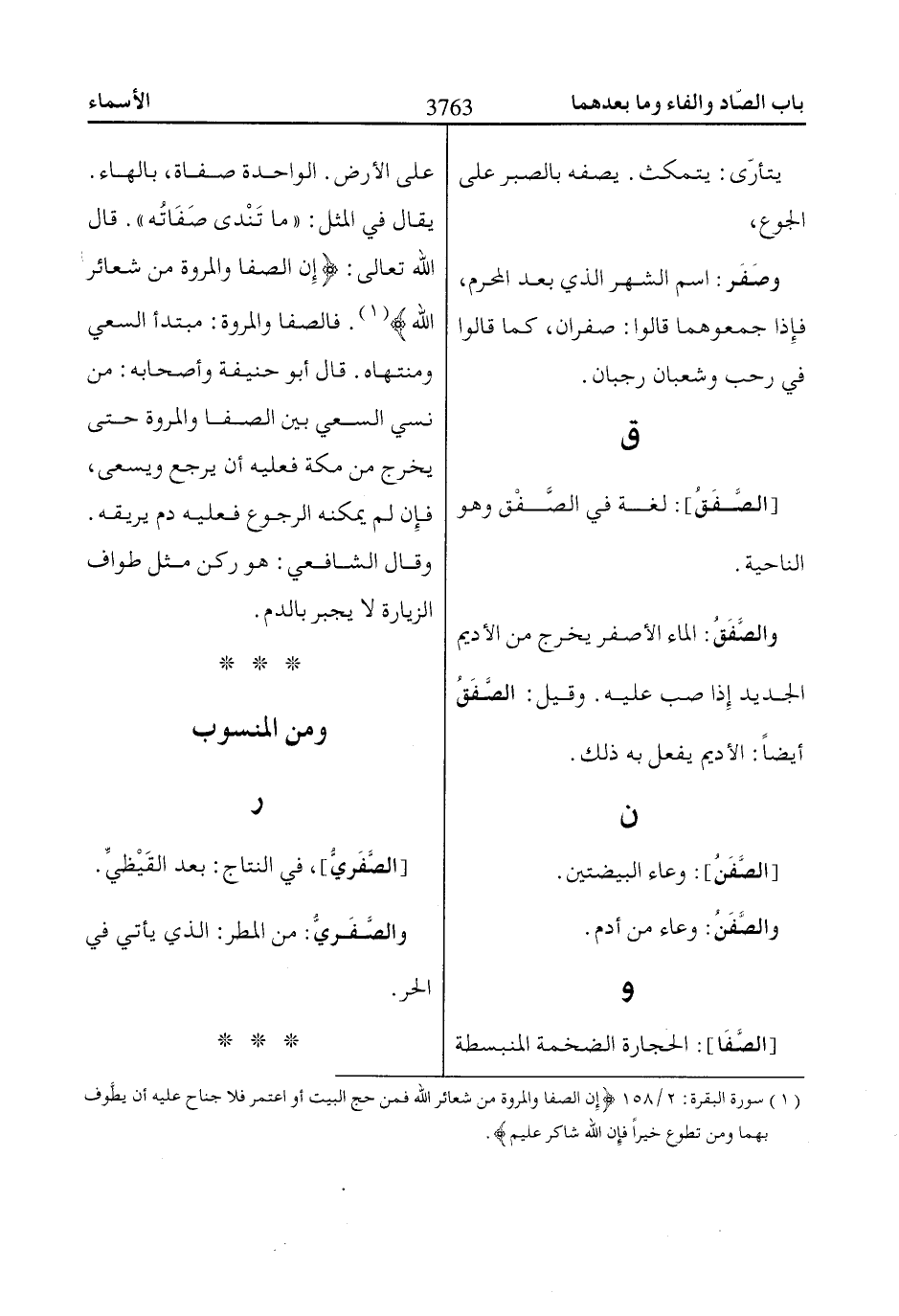 (1) سورة البقرة: 2/ 158 إِنَّ الصَّفاا وَالْمَرْوَةَ مِنْ شَعاائِرِ اللّاهِ فَمَنْ حَجَّ الْبَيْتَ أَوِ اعْتَمَرَ فَلاا جُنااحَ عَلَيْهِ أَنْ يَطَّوَّفَ بِهِماا وَمَنْ تَطَوَّعَ خَيْراً فَإِنَّ اللّاهَ شااكِرٌ عَلِيمٌ.
