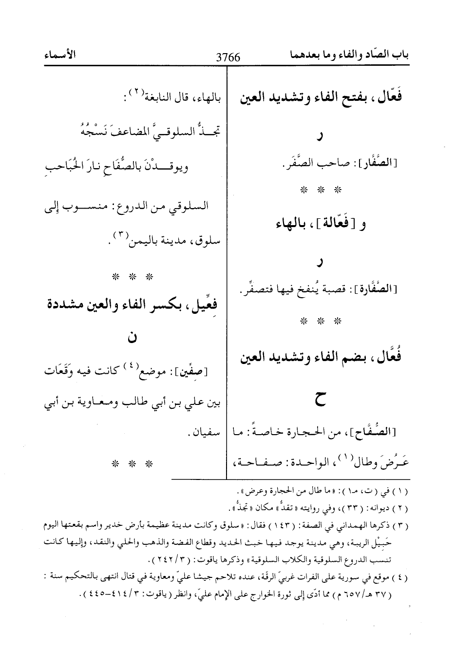 (4) موقع في سورية على الفرات غربيّ الرقّة، عنده تلاحم جيشا عليّ ومعاوية في قتال انتهى بالتحكيم سنة: