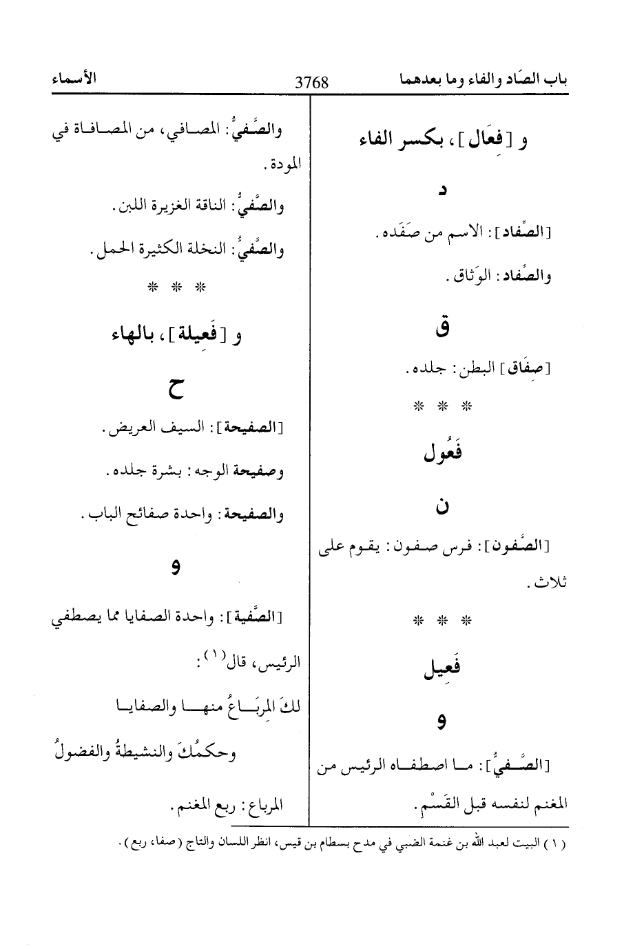 (1) البيت لعبد اللّاه بن غنمة الضبي في مدح بسطام بن قيس، انظر اللسان والتاج (صفا، ربع).