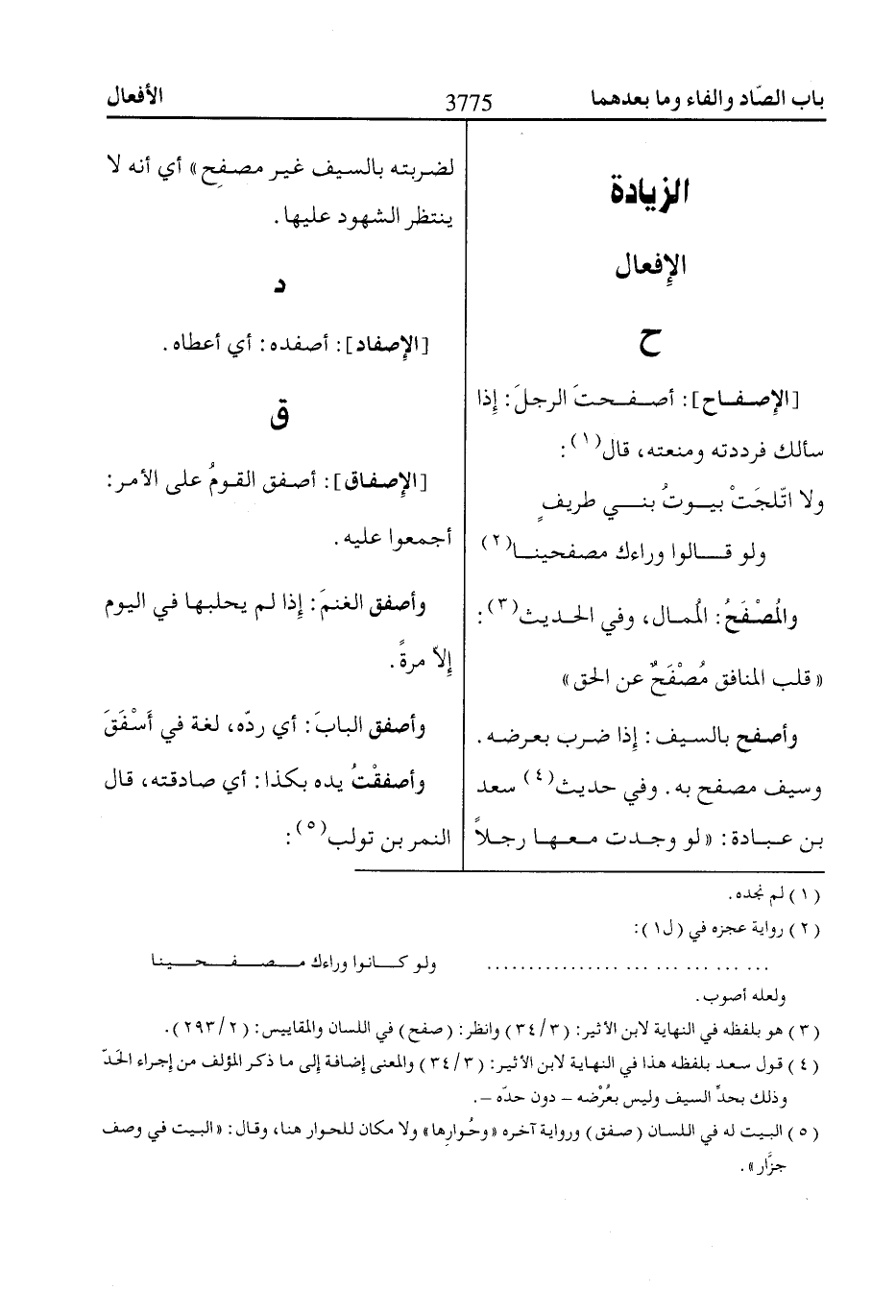 (3) هو بلفظه في النهاية لابن الأثير: (3/ 34) وانظر: (صفح) في اللسان والمقاييس: (2/ 293).