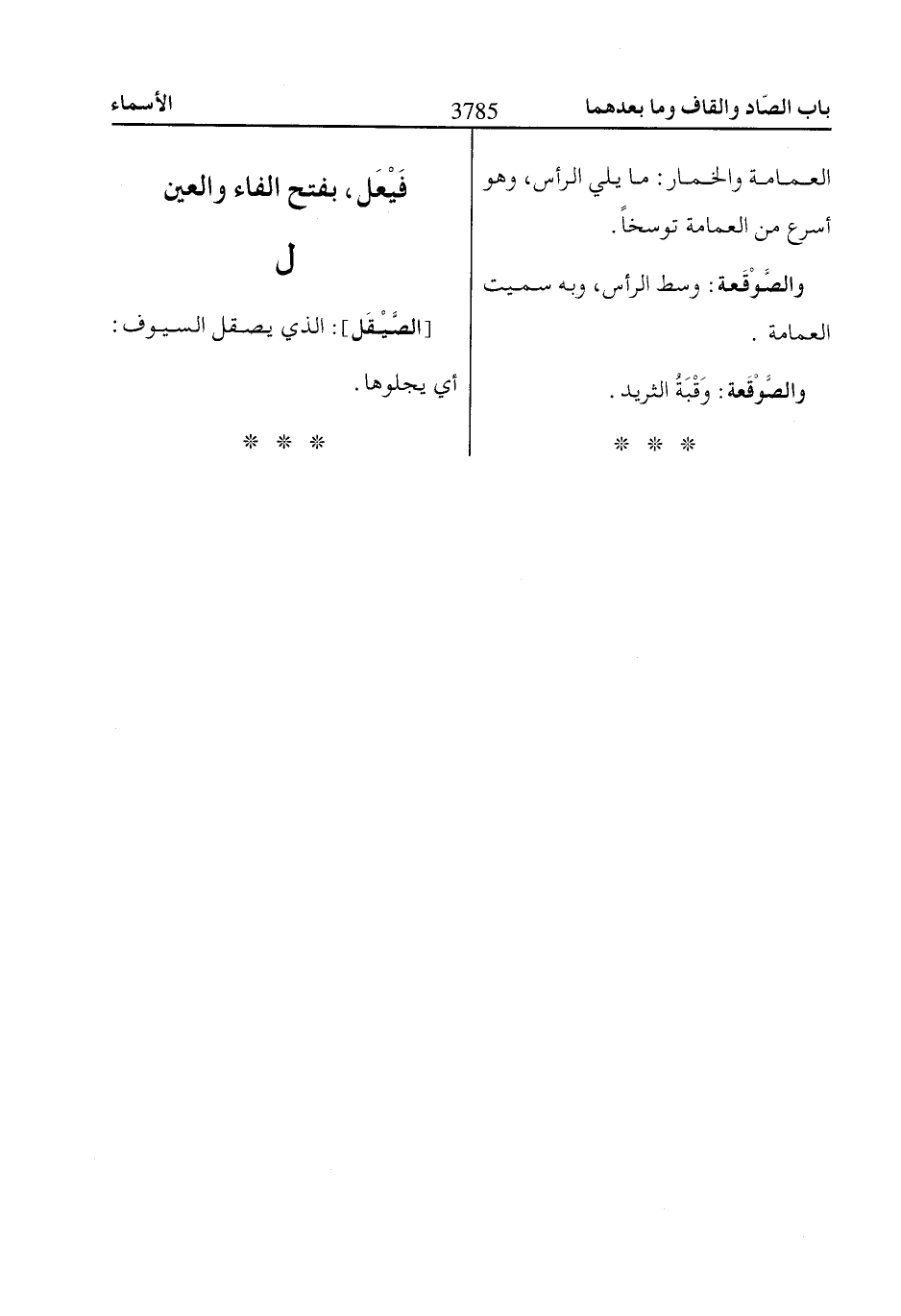 والصَّوْقَعة: وسط الرأس، وبه سميت العمامة.