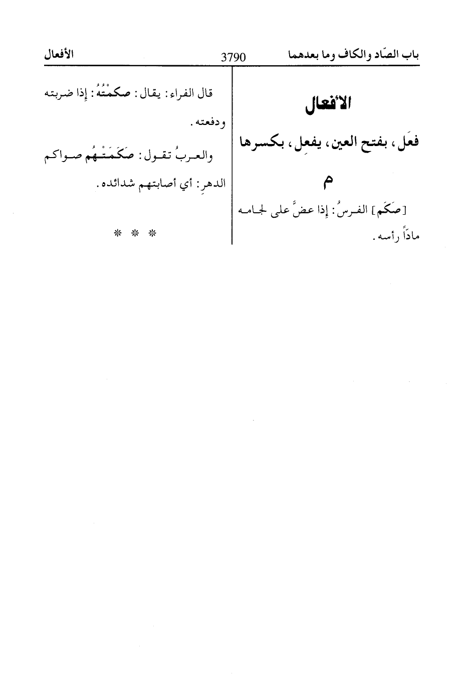[صَكَم] الفرسُ: إِذا عضَّ على لجامه مادّاً رأسه.