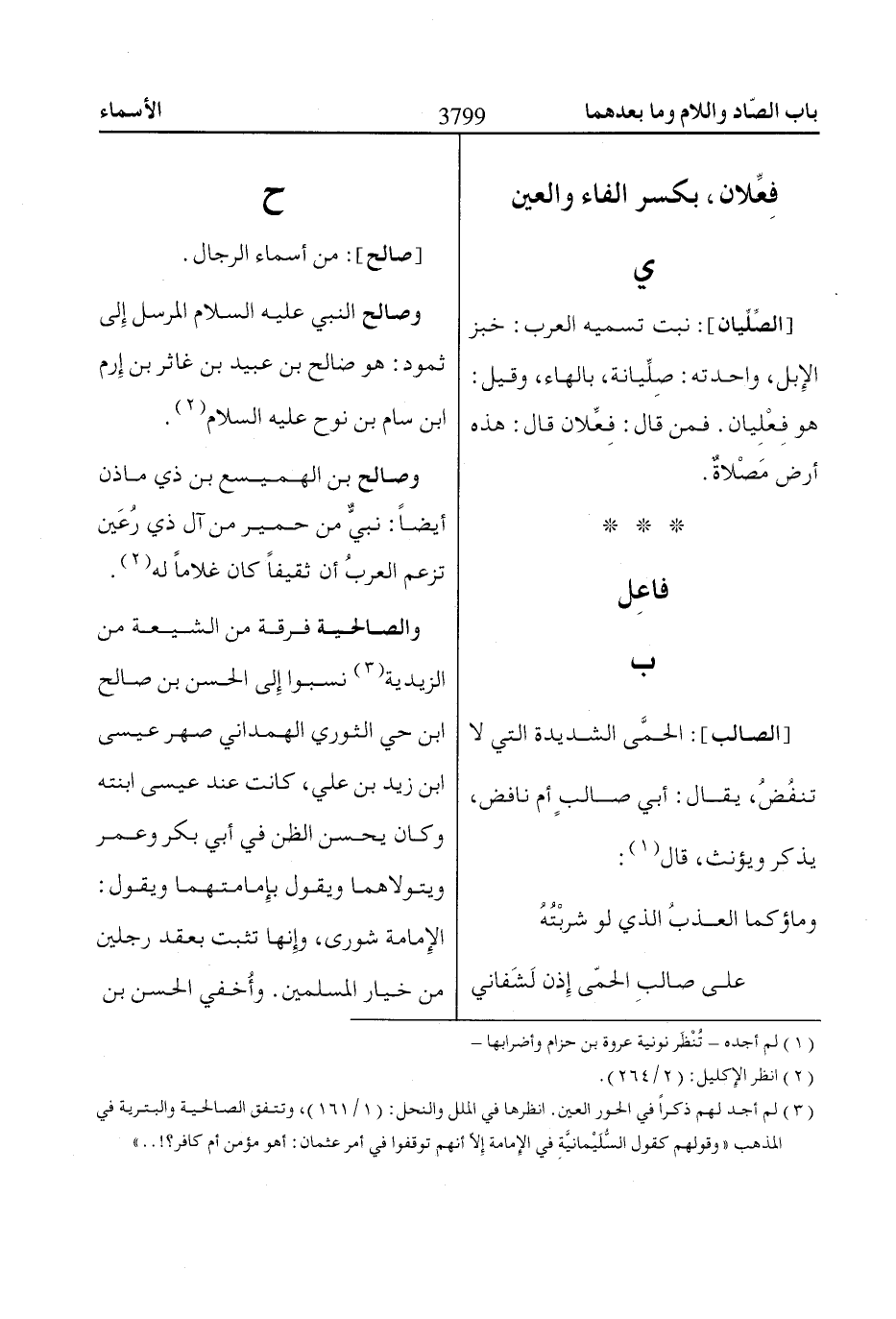 والصالحية فرقة من الشيعة من الزيدية «3» نسبوا إِلى الحسن بن صالح ابن حي الثوري الهمداني صهر عيسى ابن زيد بن علي، كانت عند عيسى ابنته وكان يحسن الظن في أبي بكر وعمر ويتولاهما ويقول بإِمامتهما ويقول: