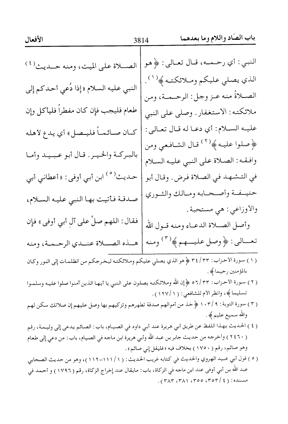 (2) سورة الأحزاب: 33/ 56 إِنَّ اللّاهَ وَمَلاائِكَتَهُ يُصَلُّونَ عَلَى النَّبِيِّ ياا أَيُّهَا الَّذِينَ آمَنُوا صَلُّوا عَلَيْهِ وَسَلِّمُوا تَسْلِيماً، وانظر الأم للشافعي: (1/ 127).