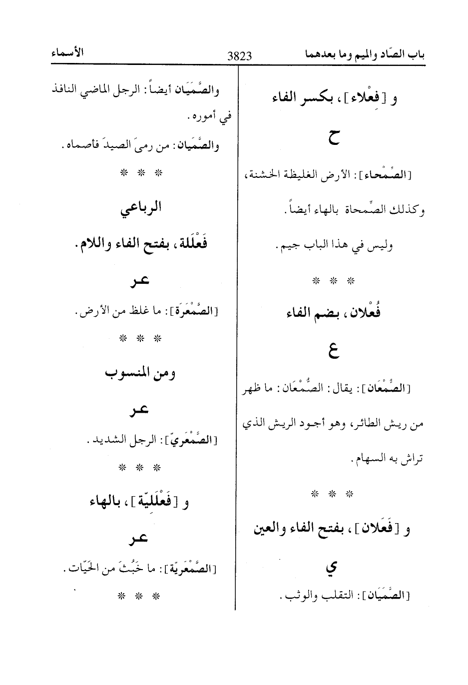 [الصُّمْعَان]: يقال: الصُّمْعَان: ما ظهر من ريش الطائر، وهو أجود الريش الذي تراش به السهام.
