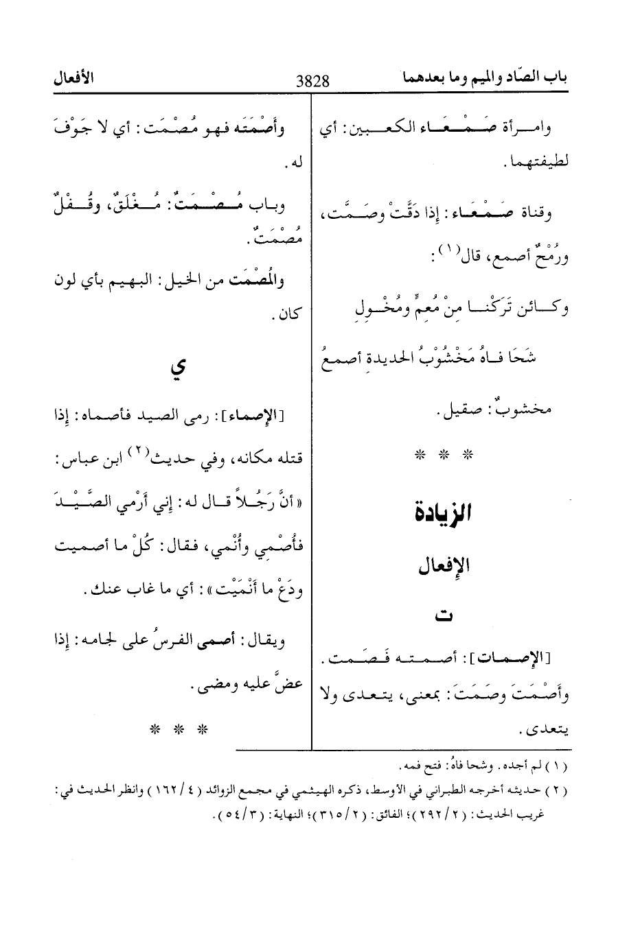 وأَصْمَتَ وصَمَتَ: بمعنى، يتعدى ولا يتعدى.