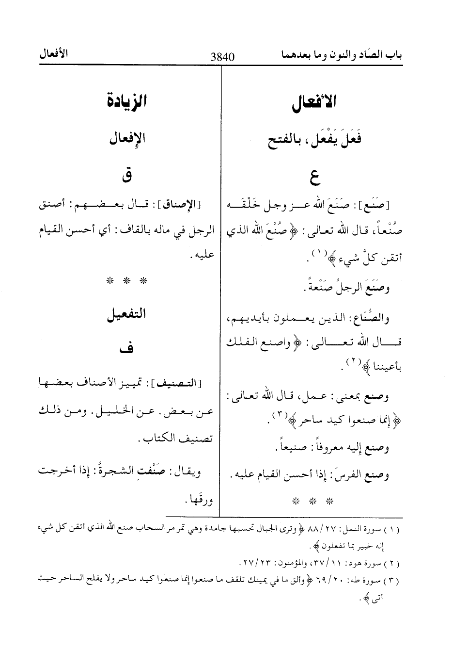 [صَنَع]: صَنَعَ اللّاه عز وجل خَلْقَه صُنْعاً، قال اللّاه تعالى: صُنْعَ اللّاهِ الَّذِي أَتْقَنَ كُلَّ شَيْءٍ «1».