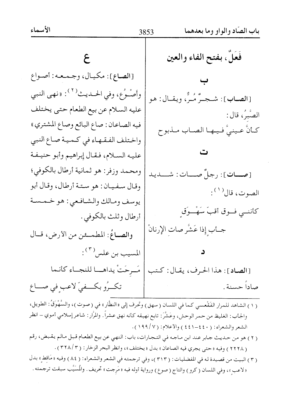 والصاعُ: المطمئن من الأرض، قال المسيب بن علس «3»: