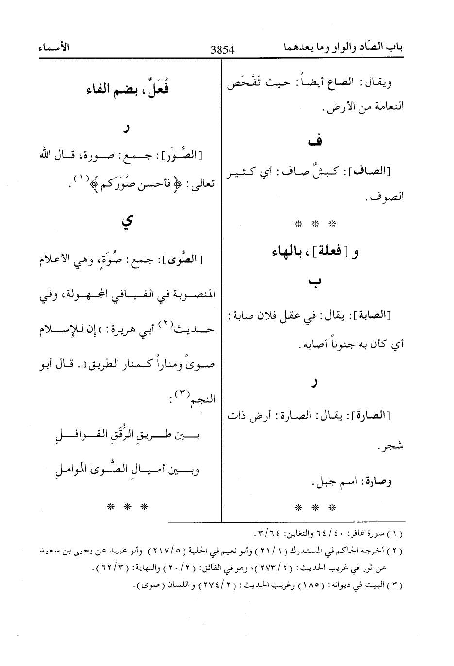 (3) البيت في ديوانه: (185) وغريب الحديث: (2/ 274) واللسان (صوى).