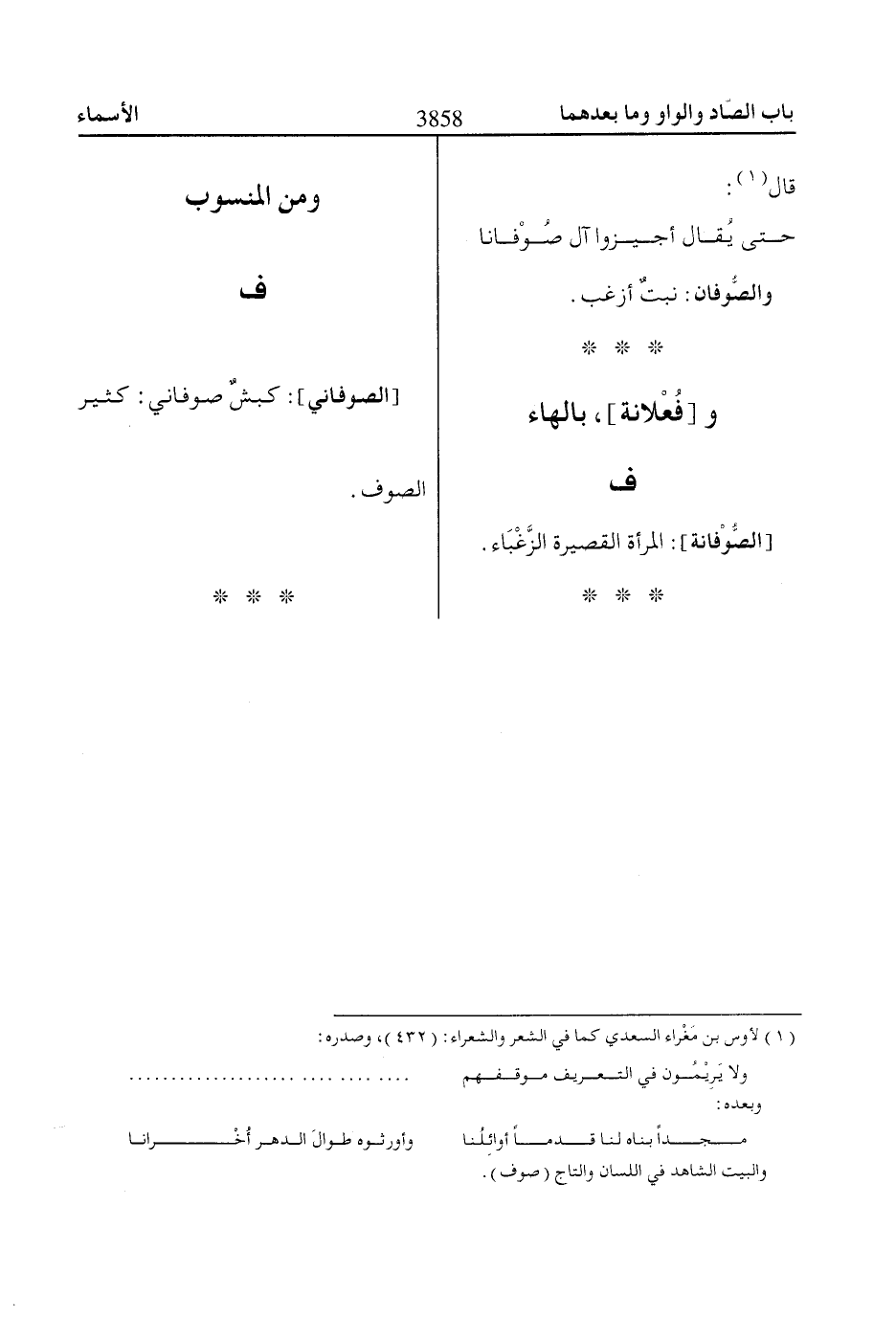 [الصوفاني]: كبشٌ صوفاني: كثير الصوف.