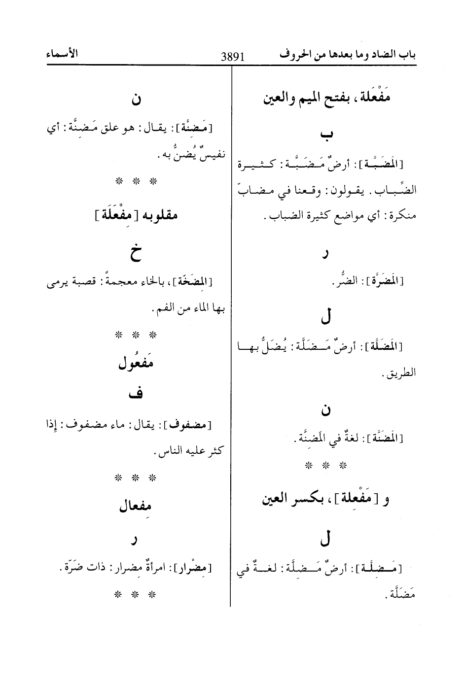 ... و [مَفْعِلة]، بكسر العين
