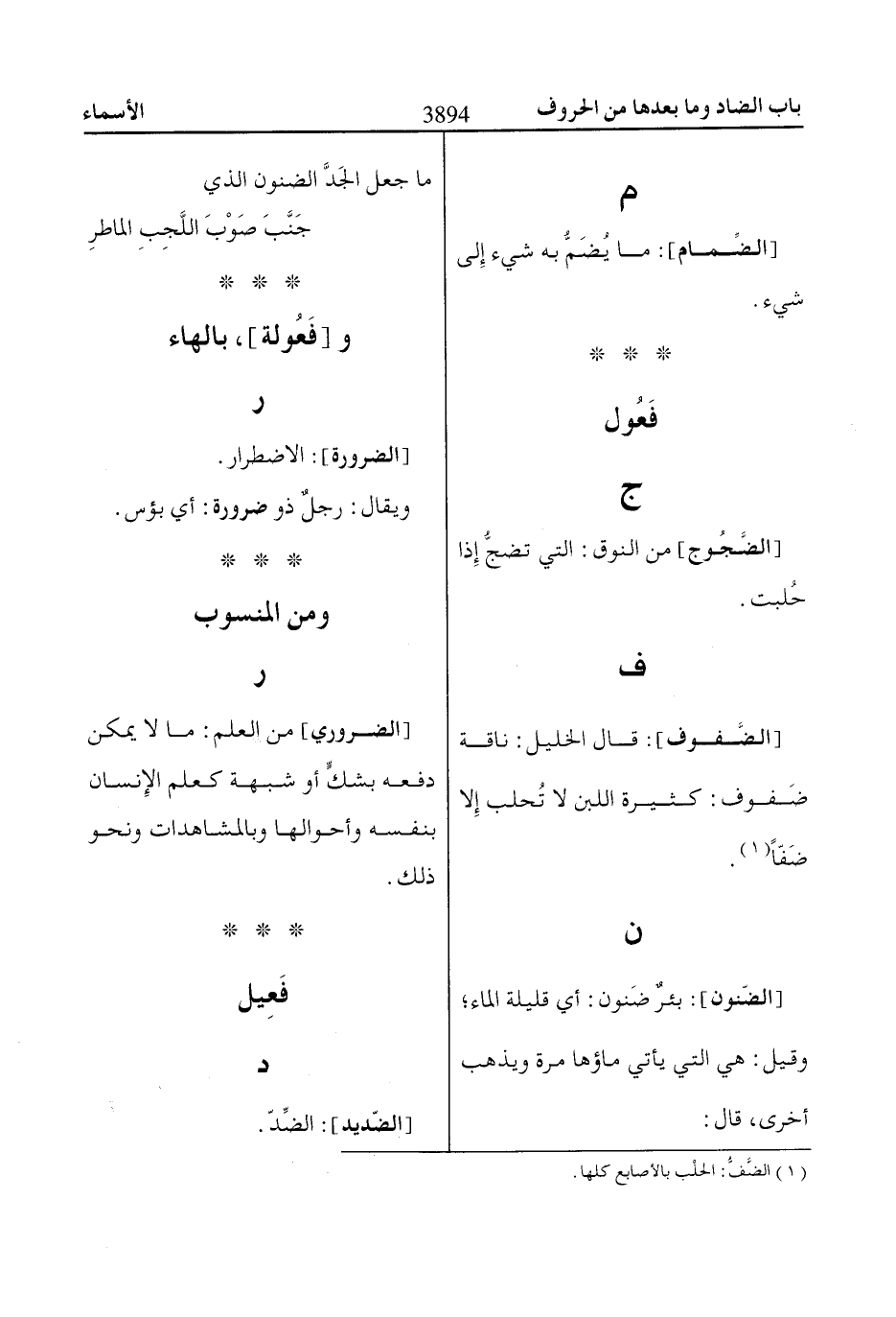 [الضَّفوف]: قال الخليل: ناقة ضَفوف: كثيرة اللبن لا تُحلب إِلا ضَفّاً «1».
