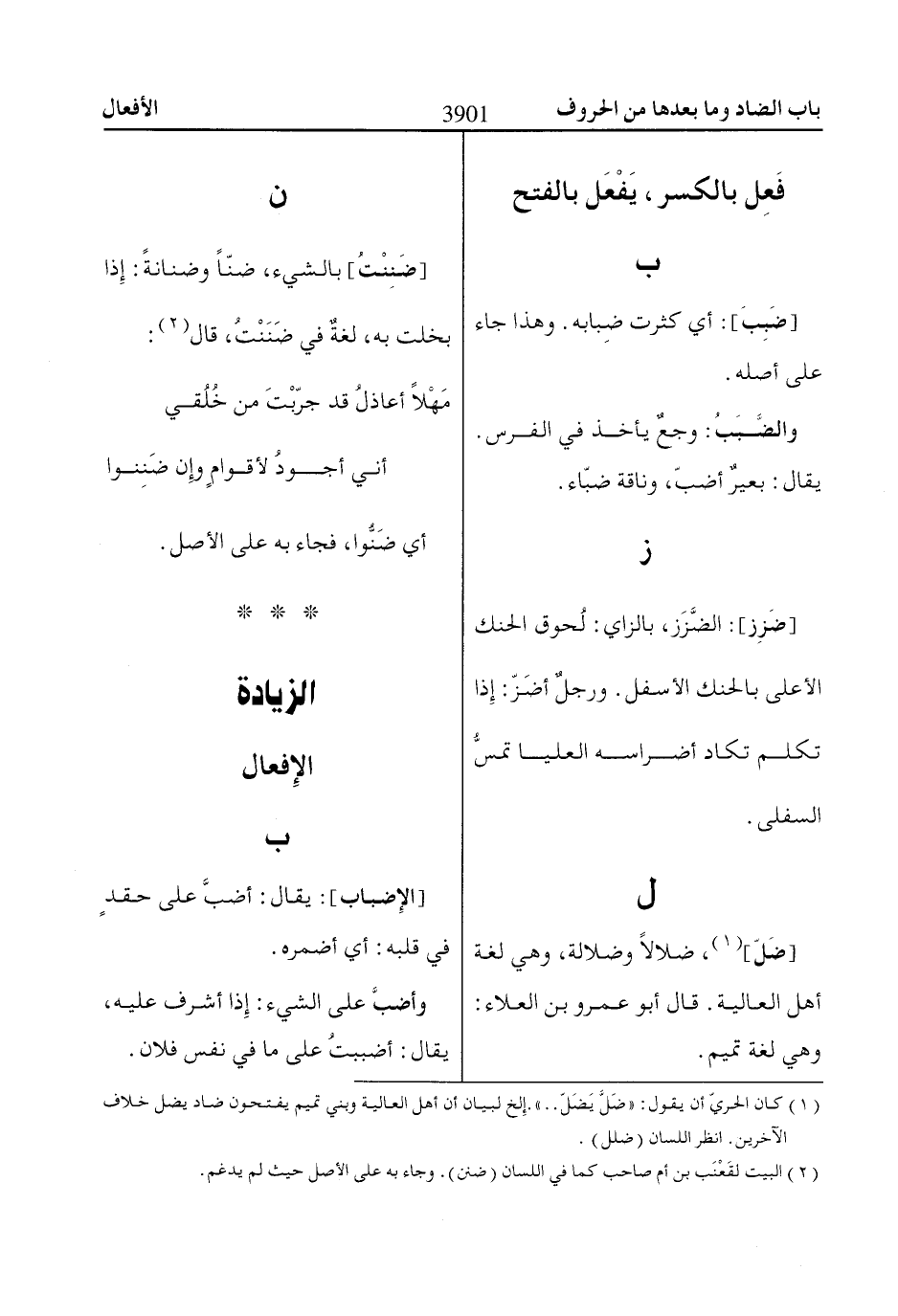 (1) كان الحريّ أن يقول: «ضَلَّ يَضَلّ .. ». إِلخ لبيان أن أهل العالية وبني تميم يفتحون ضاد يضل خلاف الآخرين. انظر اللسان (ضلل).