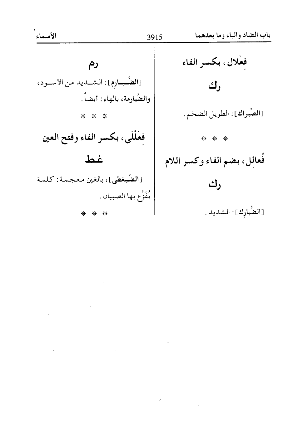 [الضُّبارِم]: الشديد من الأسود، والضُّبارمة، بالهاء: أيضاً.