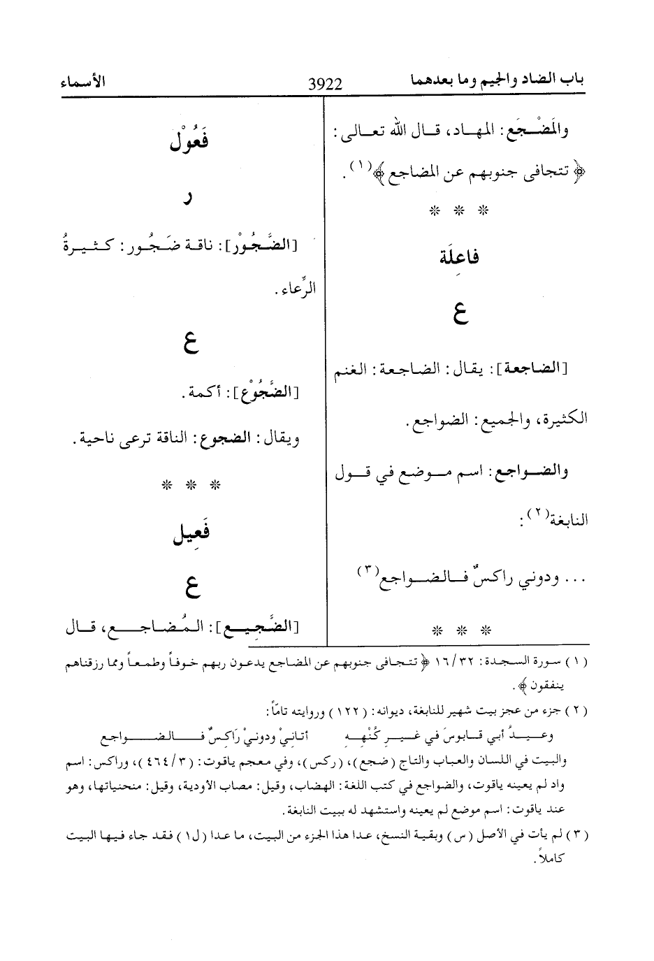 [الضاجعة]: يقال: الضاجعة: الغنم الكثيرة، والجميع: الضواجع.