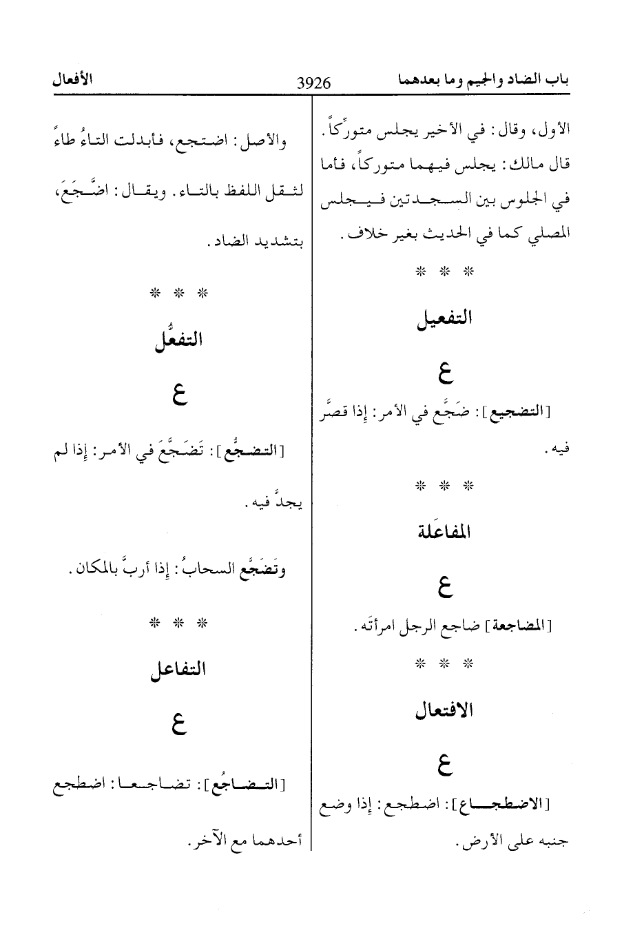 [الاضطجاع]: اضطجع: إِذا وضع جنبه على الأرض.