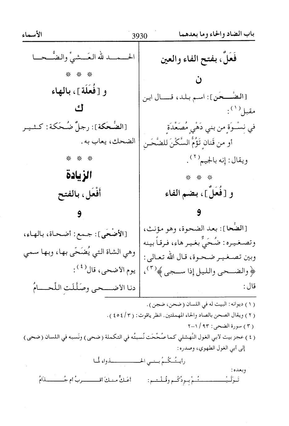 و [الأضْحَى]: جمع: أضحاة، بالهاء، وهي الشاة التي يُضَحّى بها، وبها سمي يوم الأضحى، قال «4»: