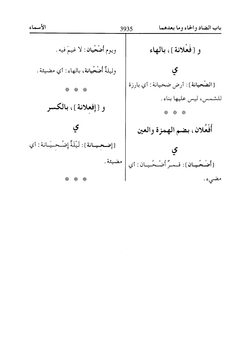 [أُضْحُيان]: قمرٌ أُضْحُيان: أي مضيء.