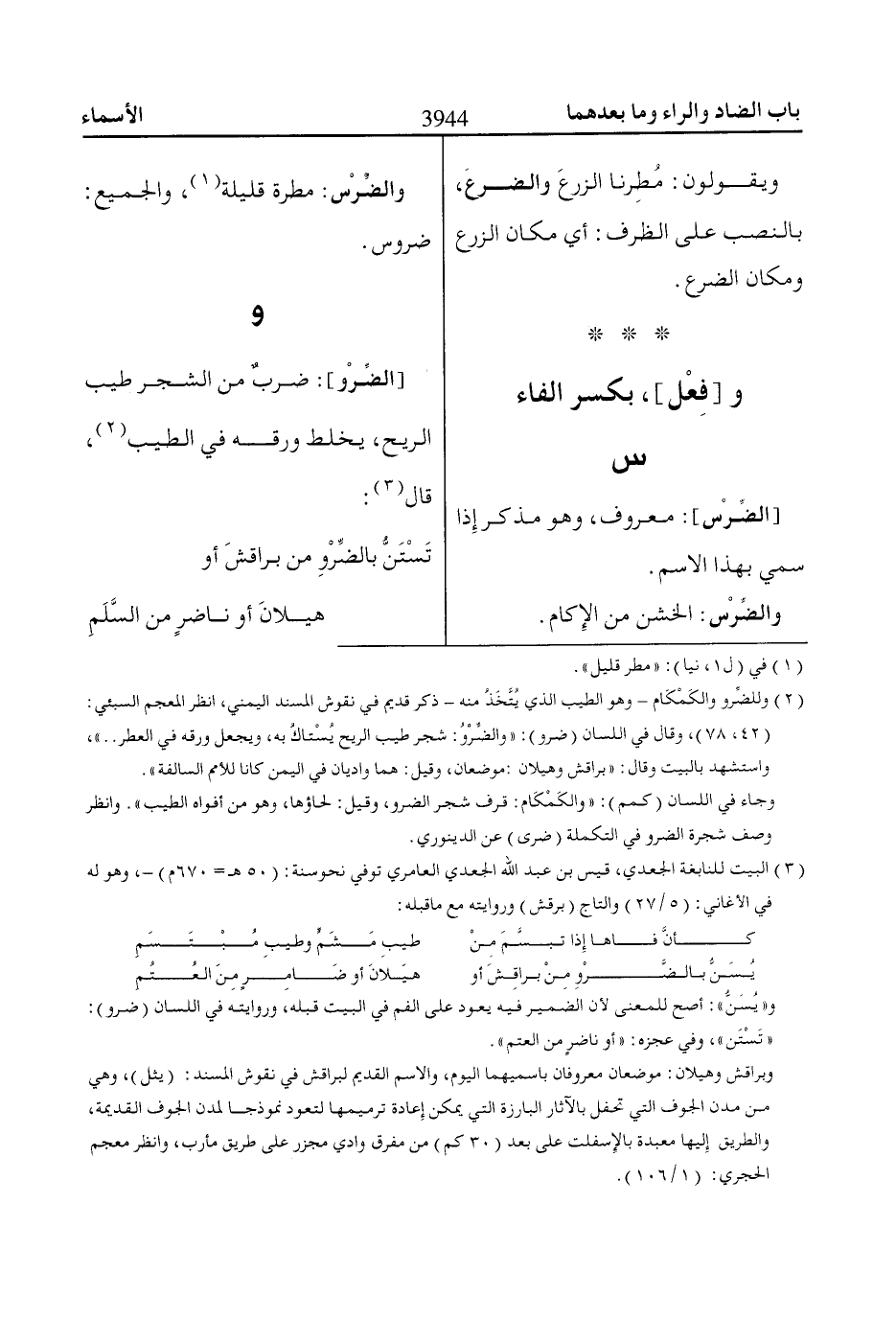 (2) وللضِّرو والكَمْكَام- وهو الطيب الذي يُتَّخَذُ منه- ذكر قديم في نقوش المسند اليمني، انظر المعجم السبئي: