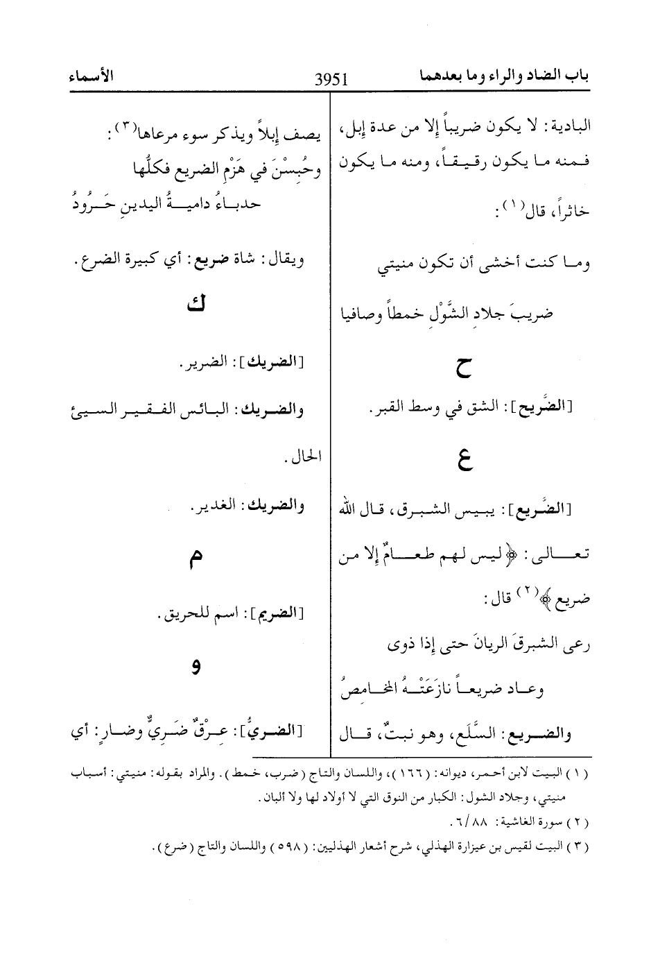 والضريع: السَّلَع، وهو نبتٌ، قال يصف إِبلًا ويذكر سوء مرعاها «3»: