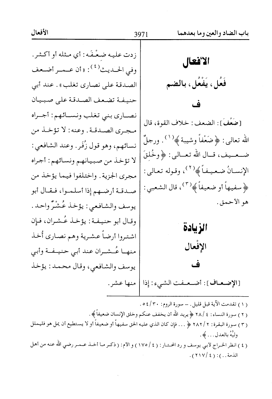 وفي الحديث «4»: «أن عمر أضعف الصدقة على نصارى تغلب»