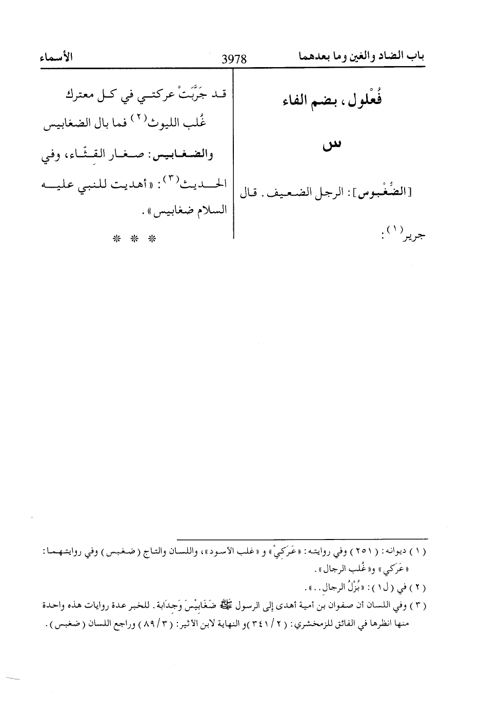 ، واللسان والتاج (ضغبس) وفي روايتهما: