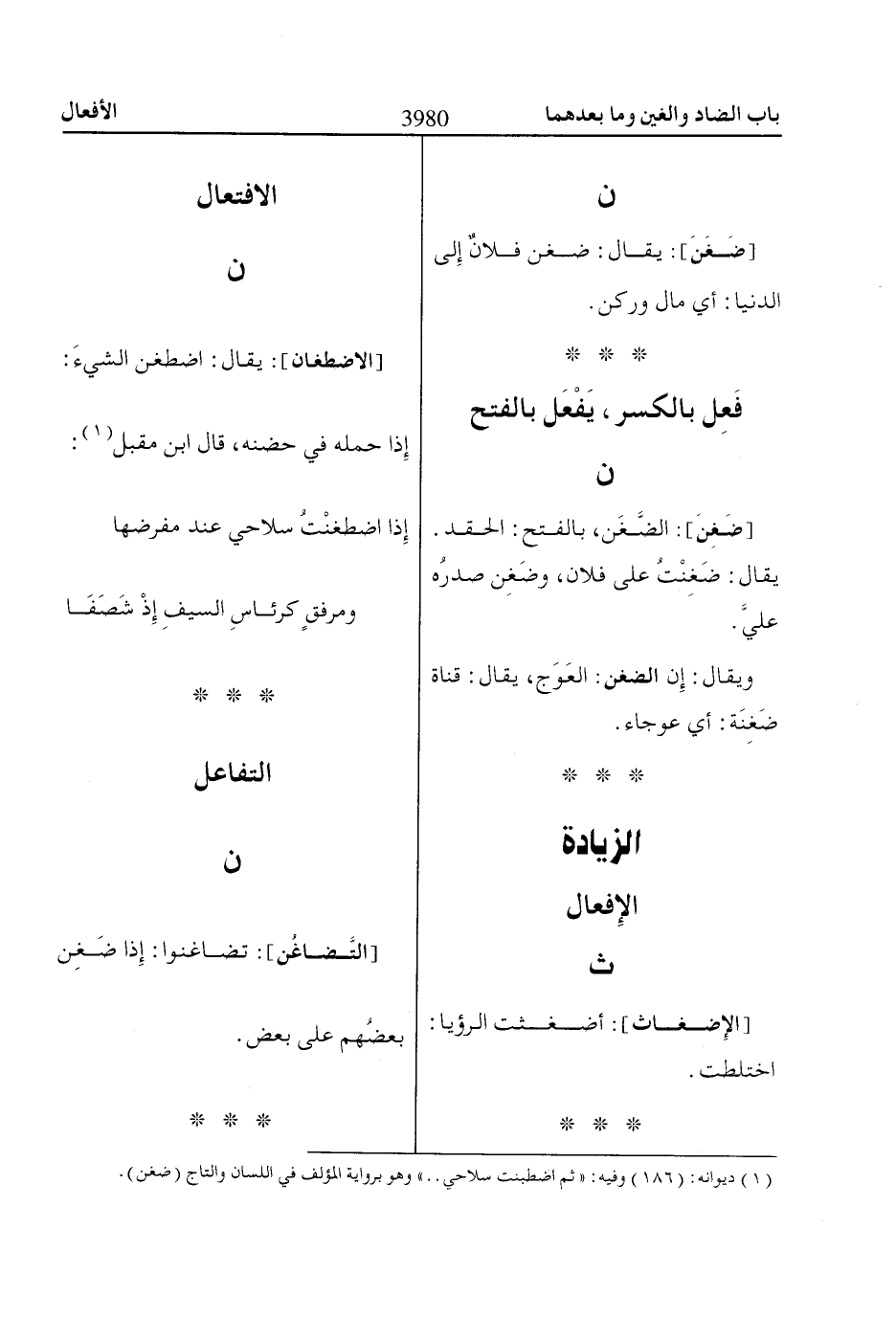 [الاضطغان]: يقال: اضطغن الشيءَ: