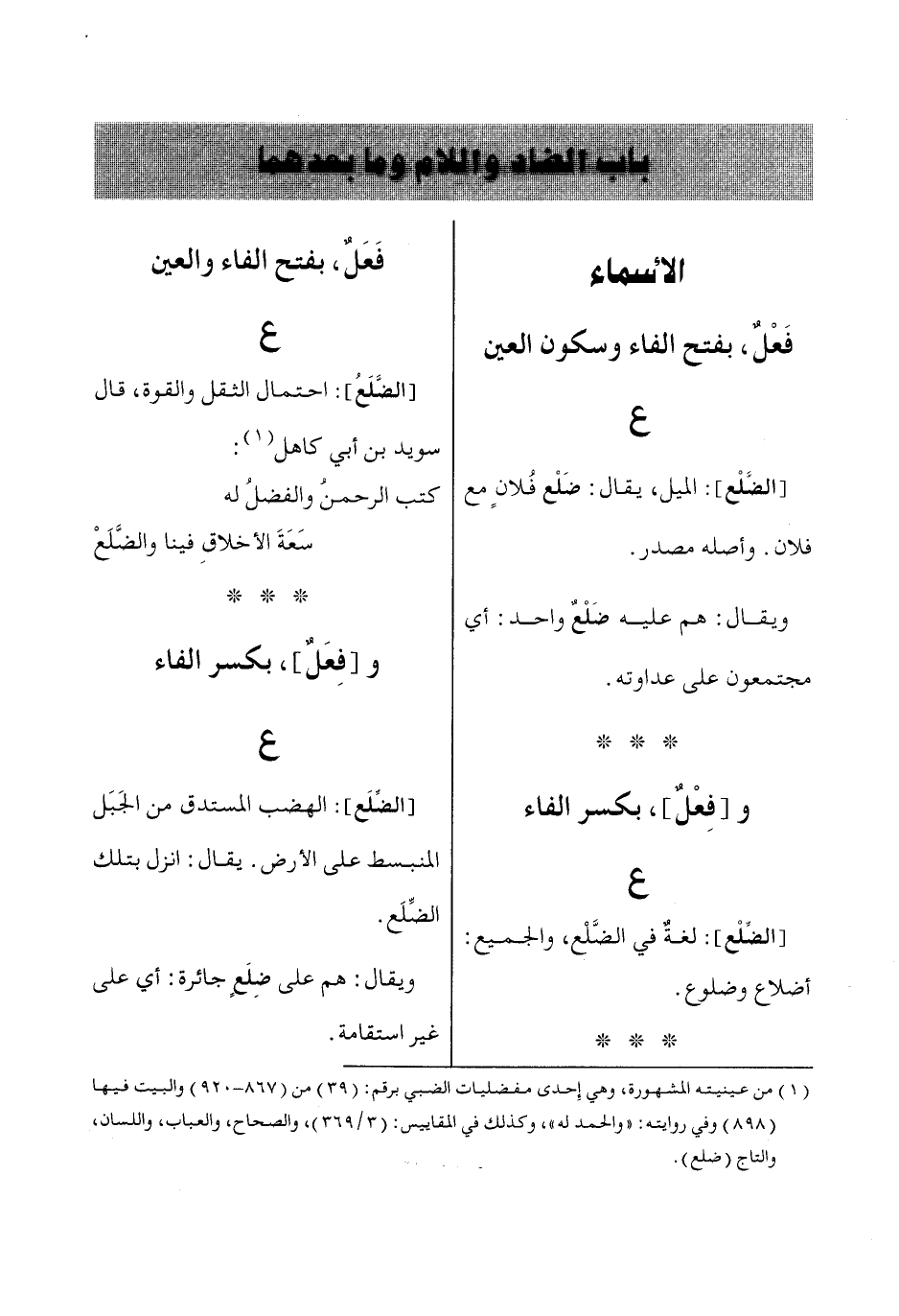 [الضَّلَعُ]: احتمال الثقل والقوة، قال سويد بن أبي كاهل «1»: