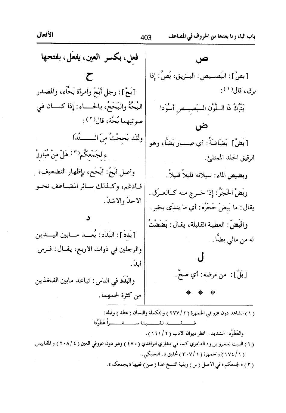 وأصل أبَحّ: أَبْحَح، بإِظهار التضعيف، فأدغم، وكذلك سائر المضاعف نحو الأحدّ والأشدّ.