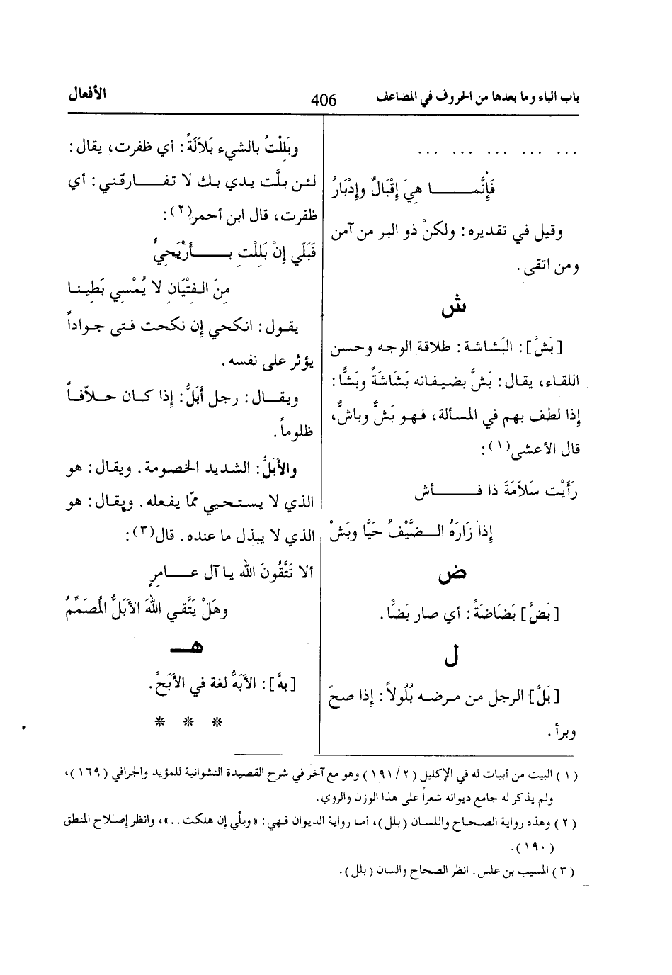 (2) وهذه رواية الصحاح واللسان (بلل)، أما رواية الديوان فهي: