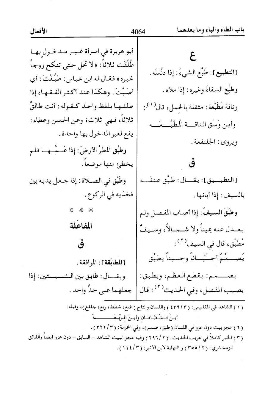 (2) عجز بيت دون عزو في اللسان (طبق، صمم)، وفي الخزانة: (3/ 322).