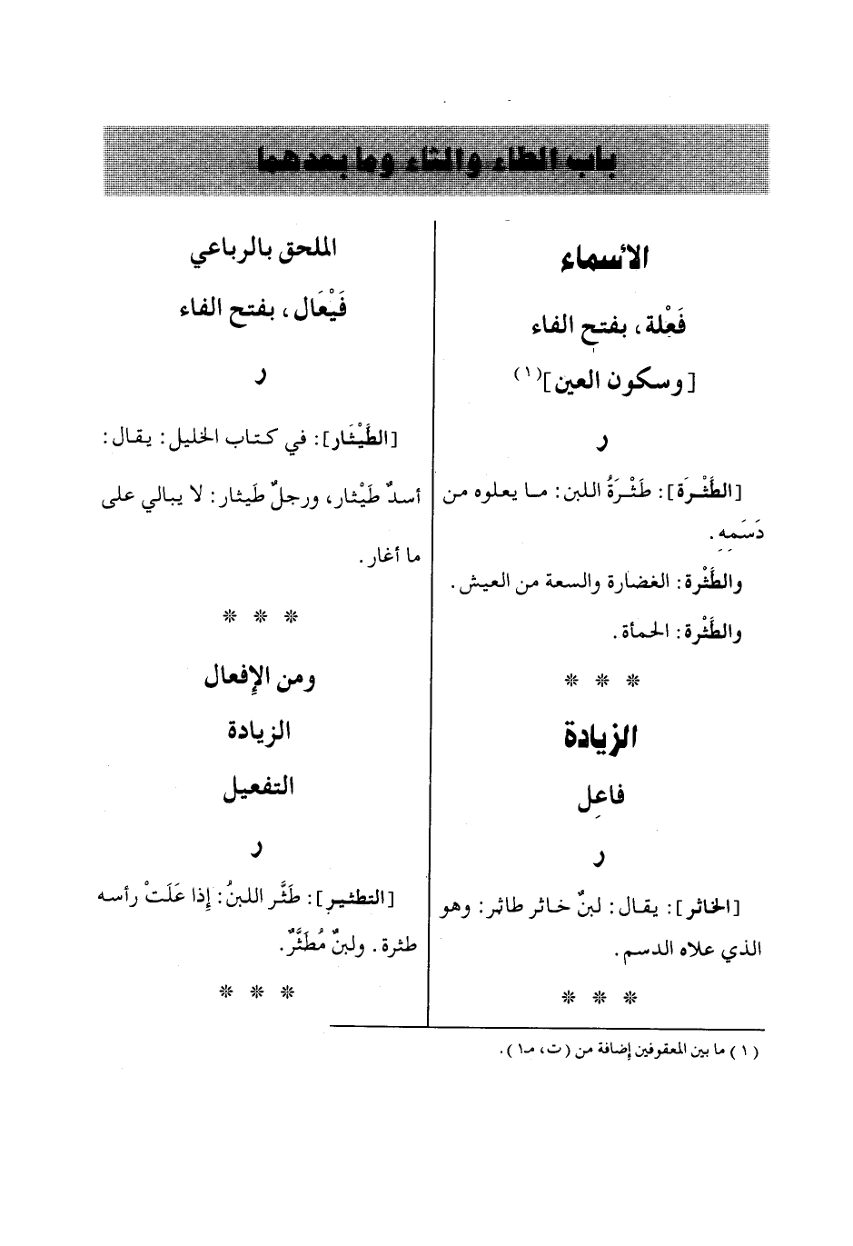 [التطثير]: طَثَّر اللبنُ: إذا عَلَتْ رأسه طثرة. ولبنٌ مُطَثَّرٌ.