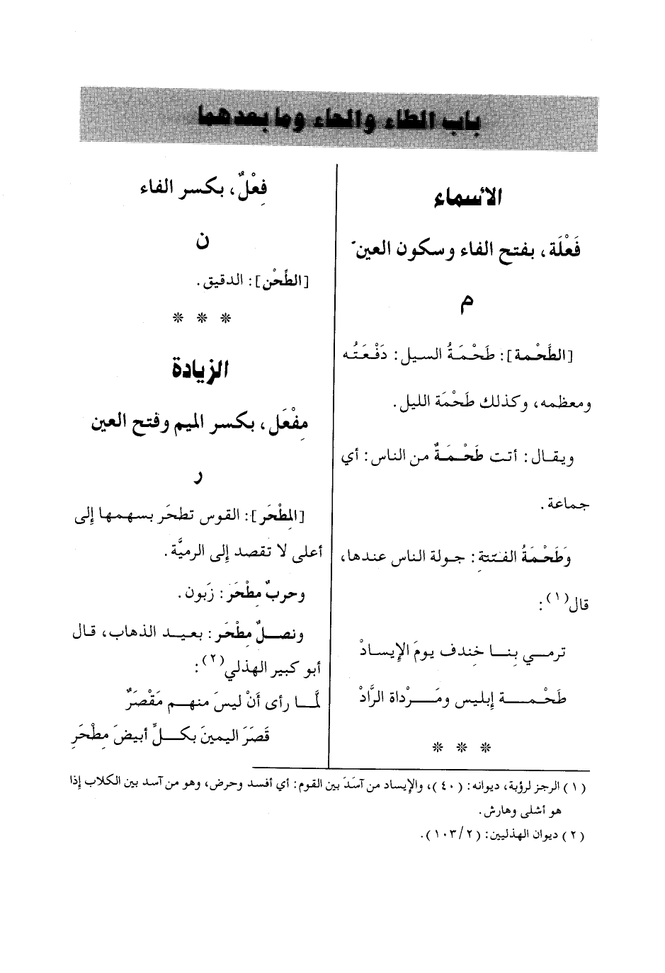 باب الطاء والحاء وما بعدهما