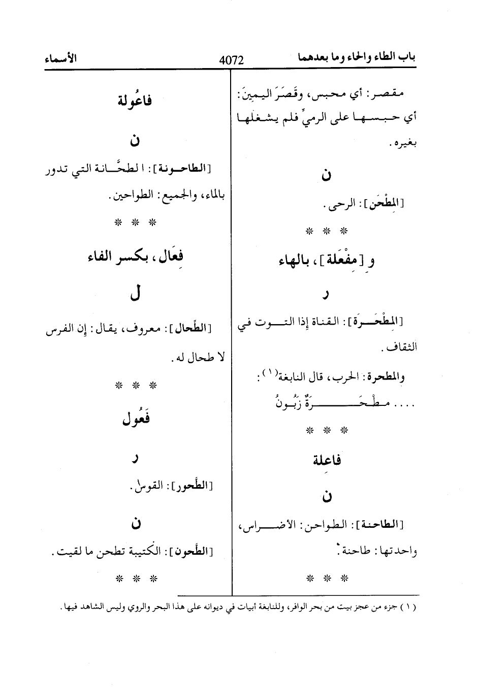 [الطاحونة]: الطحَّانة التي تدور بالماء، والجميع: الطواحين.