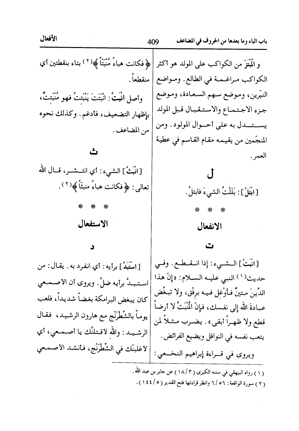 فكانت هباء منبتّا «2» بتاء بنقطتين أي منقطعاً.