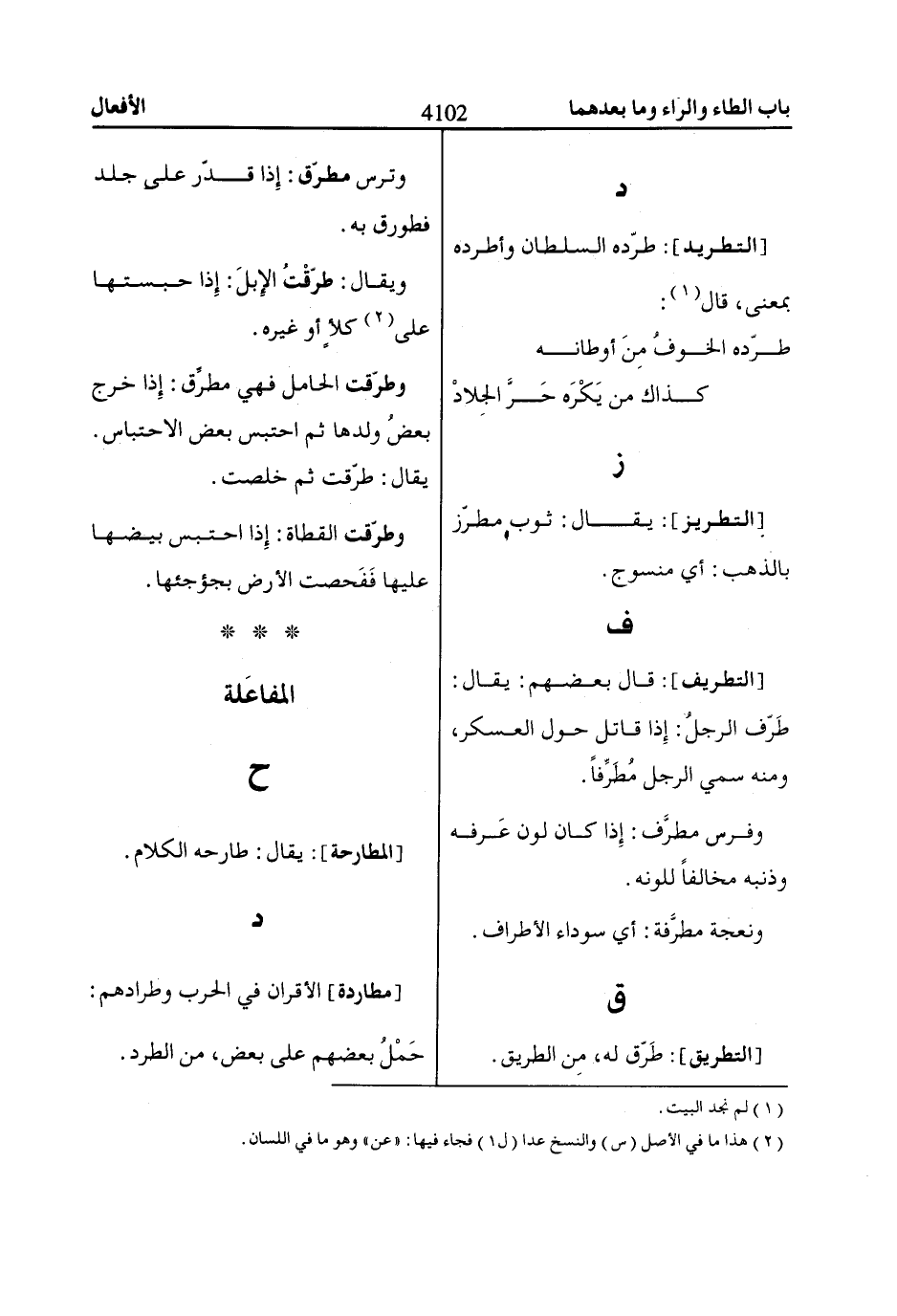 [التطريد]: طرّده السلطان وأطرده بمعنى، قال «1»: