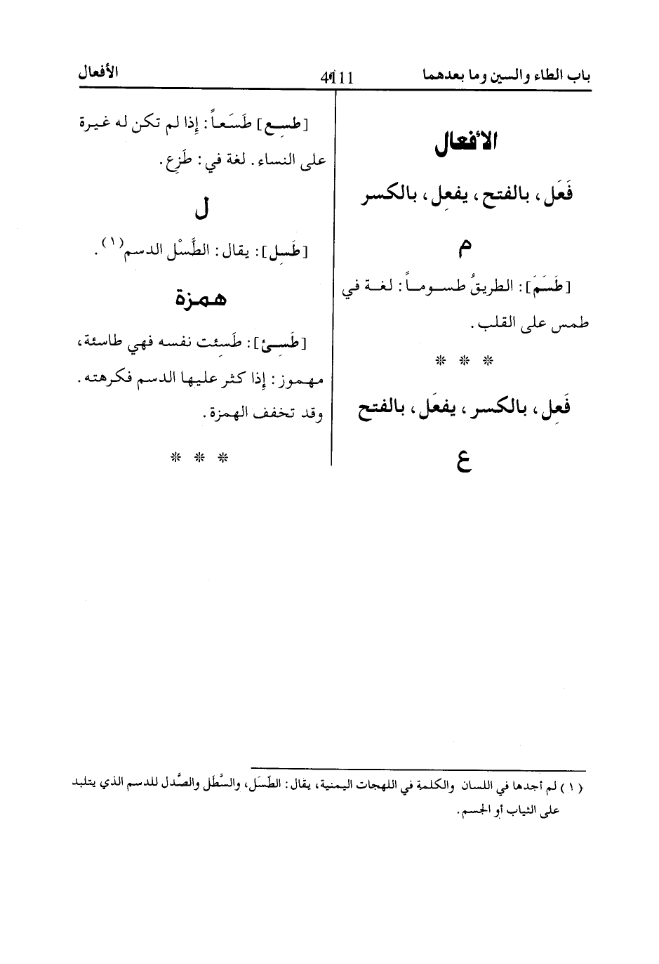 (1) لم أجدها في اللسان والكلمة في اللهجات اليمنية، يقال: الطّسَل، والسطل والصدل للدسم الذي يتلبد على الثياب أو الجسم.