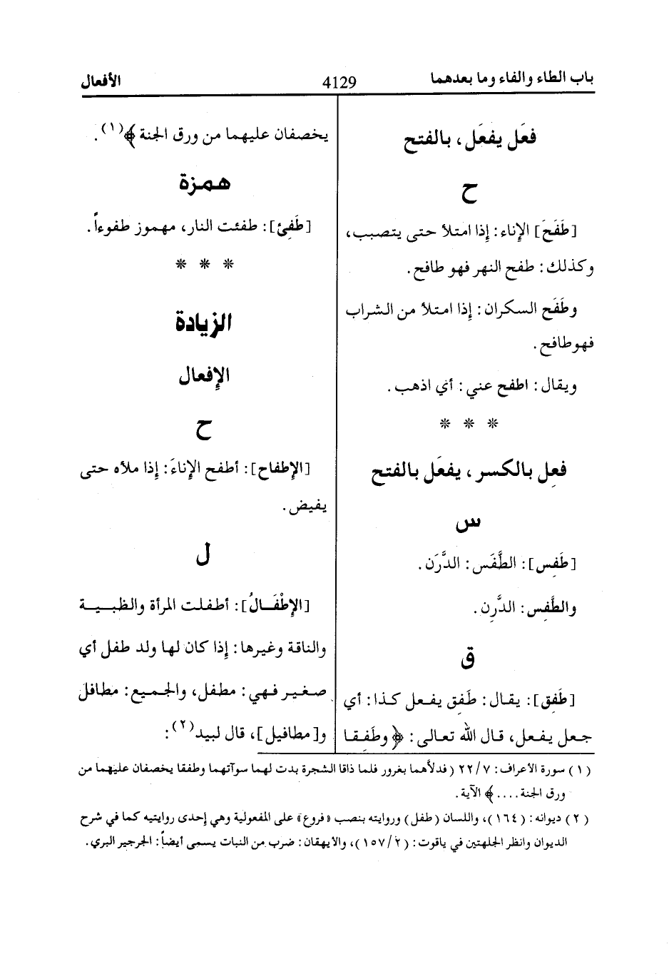 [طَفِق]: يقال: طَفِق يفعل كذا: أي جعل يفعل، قال الله تعالى: وَطَفِقاا يَخْصِفاانِ عَلَيْهِماا مِنْ وَرَقِ الْجَنَّةِ* «1».