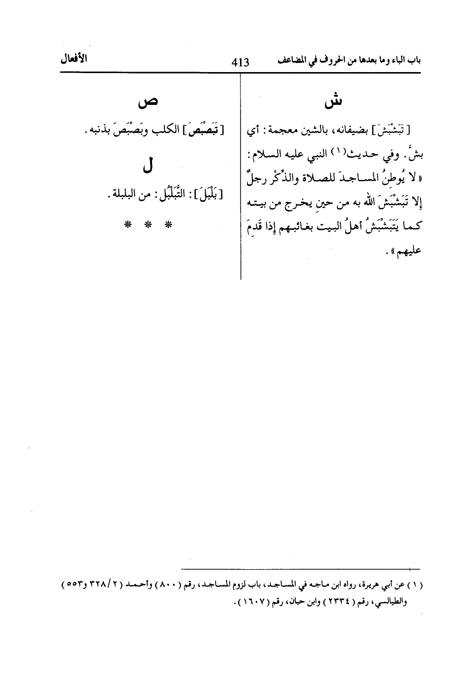 (1) عن أبي هريرة، رواه ابن ماجه في المساجد، باب لزوم المساجد، رقم (800) وأحمد (2/ 328 و 553) والطيالسي، رقم (2334) وابن حبان، رقم (1607).