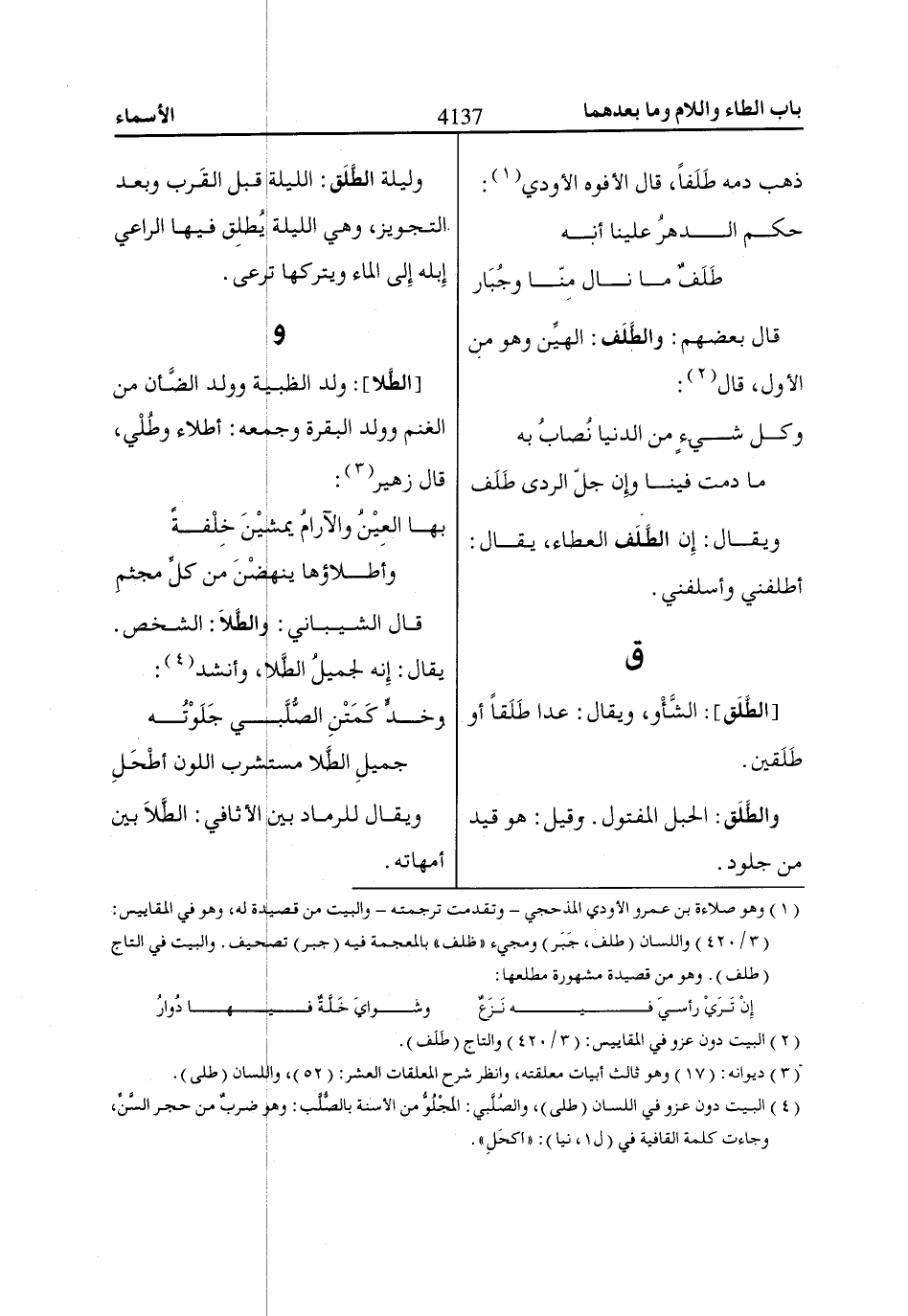 (2) البيت دون عزو في المقاييس: (3/ 420) والتاج (طلف).