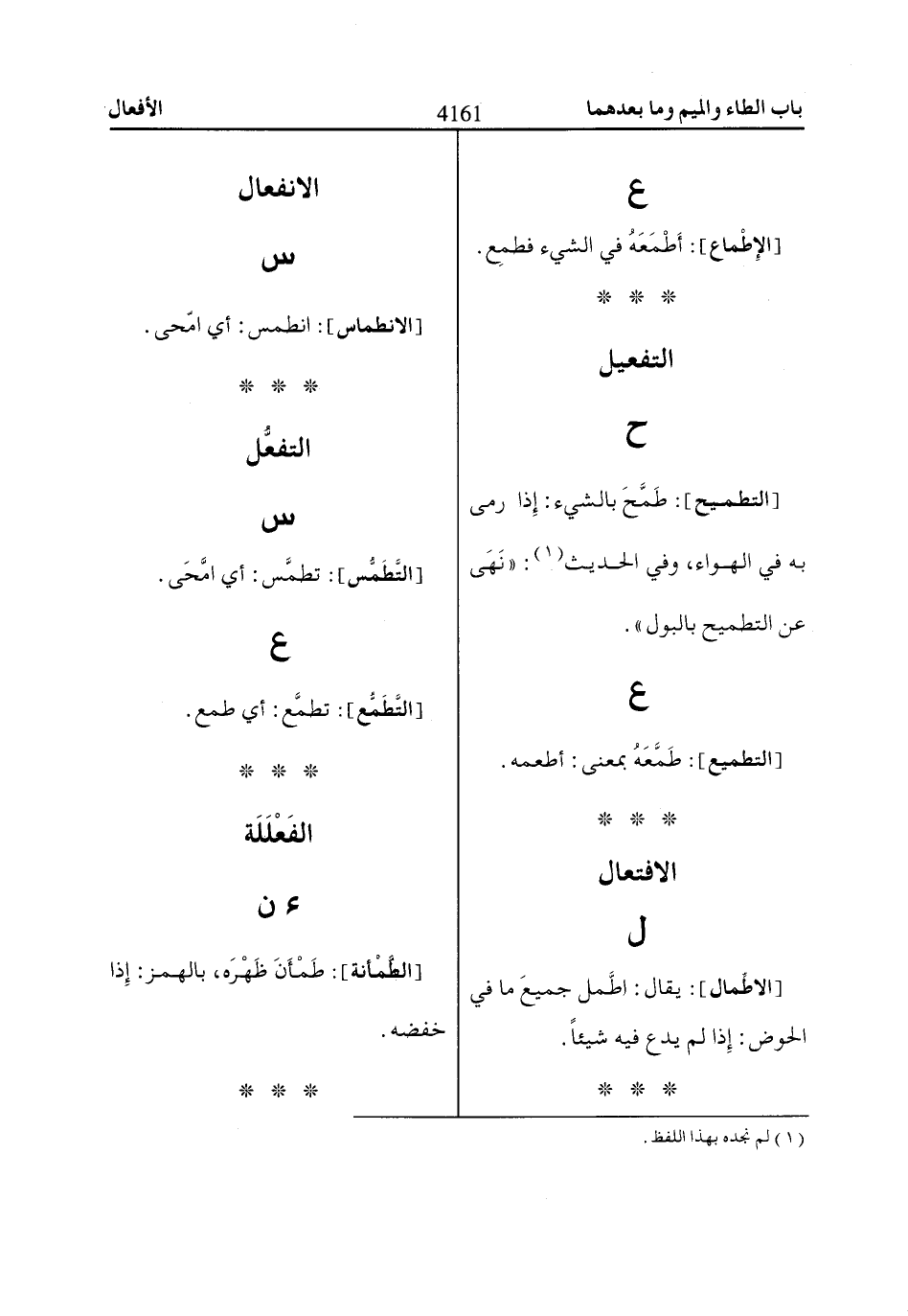 [الاطِّمال]: يقال: اطَّمل جميعَ ما في الحوض: إذا لم يدع فيه شيئاً.